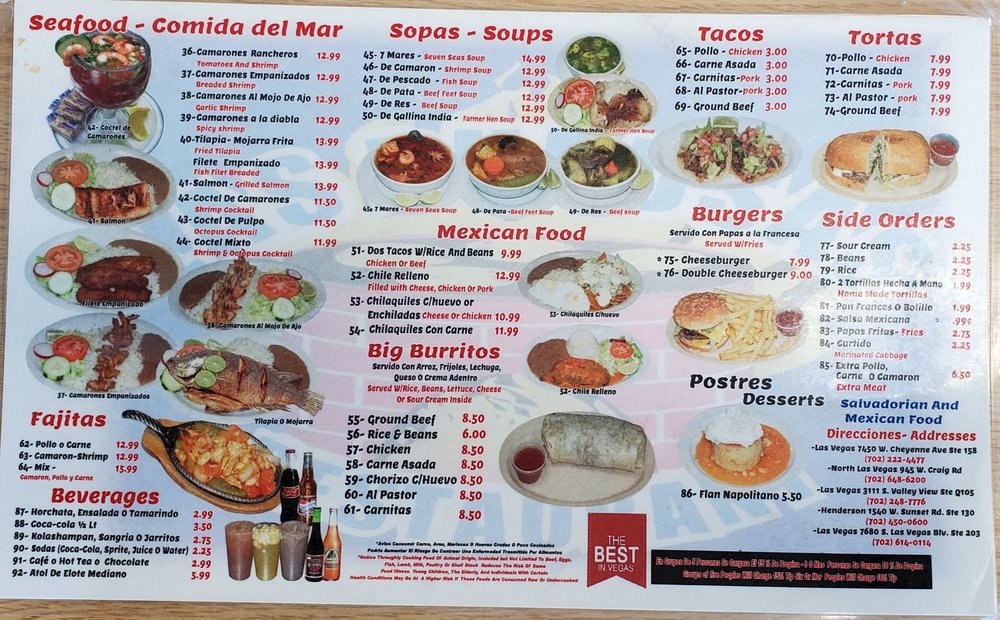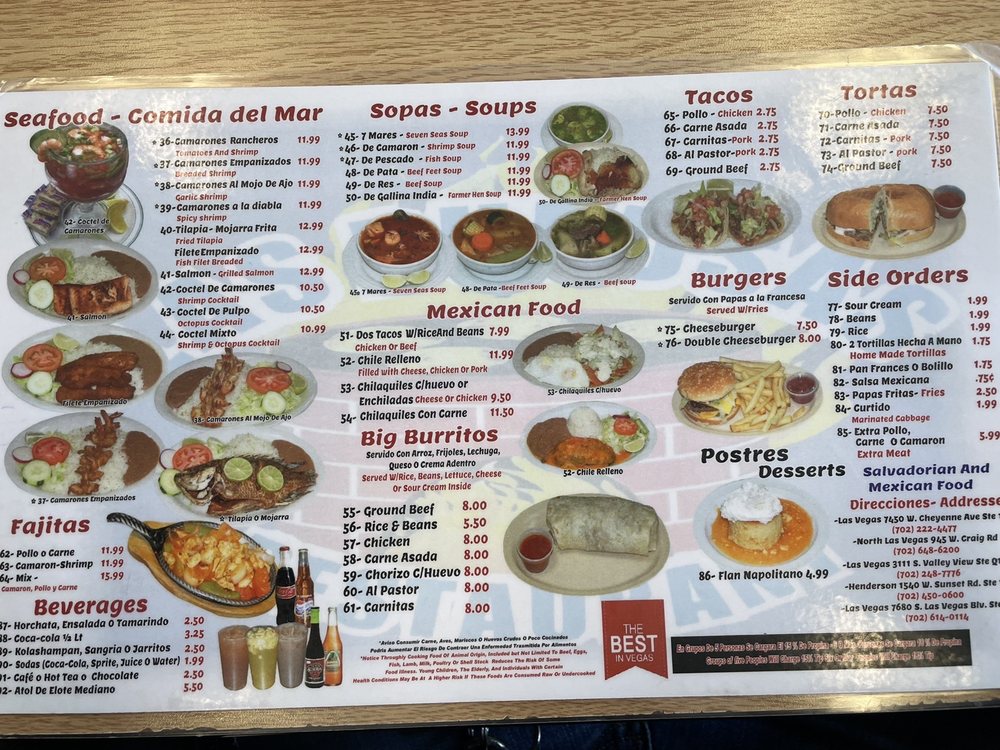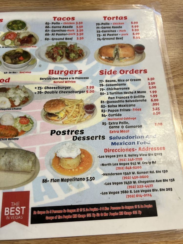 Las Pupusas is a popular restaurant specializing in authentic El Salvadoran cuisine, with a variety of traditional Mexican dishes also available. Located in Henderson, NV, this restaurant offers delivery, takeout, and reservations, making it convenient for everyone. The menu features many vegetarian options, making it suitable for different dietary preferences. Customers praise the delicious pupusas, especially the bean and cheese variety, as well as the generous portion sizes. The friendly staff and welcoming atmosphere add to the overall dining experience. With ample seating for large parties and a diverse menu selection, Las Pupusas is a great choice for breakfast, lunch, or dinner. Don't miss out on trying the pupusas, tamales, or tacos for a taste of authentic Salvadoran flavors.